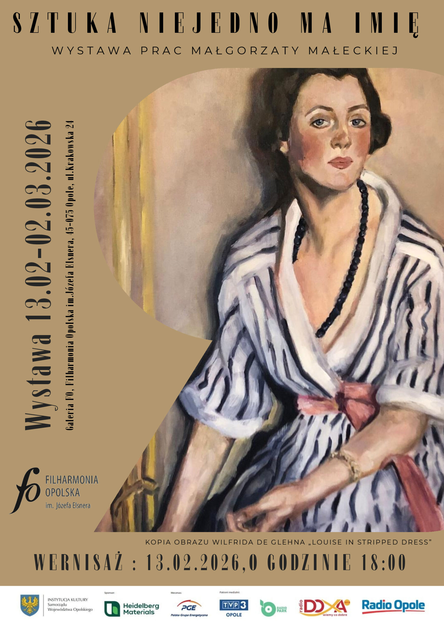 Filharmonia w swoim repertuarze proponuje różnorodne style muzyczne, tak więc i ja postanowiłam poprzez wystawę ukazać odmienność w sztukach plastycznych. Wiele osób mając na myśli prace plastyczne wyobraża sobie jedynie farbę na płótnie. By nie ulec stereotypom moja wystawa „ Sztuka niejedno ma imię” ma na celu ukazać w jak różny sposób można przedstawić to co nas otacza. Prezentacja dzieł będzie obejmowała najbardziej powszechne malarstwo olejne, akrylowe, jak i rzadziej spotykane rysunki ołówkiem, białą kredką, sepią jak i szkice. Zwieńczeniem całej ekspozycji będą kreacje odzieżowe, które na codzień projektuję w szkole plastycznej w Opolu. Mają dla mnie szczególną wartość, gdyż zostały kilkukrotnie uznane przez komisje w konkursie „Czarne na białym ”. Wyjątkowość tych strojów polega na integracji ubrań oraz obrazów, gdyż tworząc je inspirowałam się nimi. Dzięki kolekcji różnorakich dzieł na wystawie będzie można podziwiać piękno w formie strojów, natury w formie krajobrazów oraz rysunków postaci. Dzięki wyżej wymienionym stylom wystawa będzie wzbogacona kontrastem szerokiej gamy artystycznej. Część prezentowanych prac to kopie dzieł lub inspiracje fotografiami innych artystów, pozostałe stanowią oryginalne prace autorskie. Aktualnie kończy się pewien etap mojego życia. Kończę szkołę średnią, a co za tym idzie stoję przed wyborem uczelni. Z tego względu część kolekcji to prace, które będą prezentowały moje dokonania artystyczne na egzaminach wstępnych do Akademii Sztuk Pięknych.